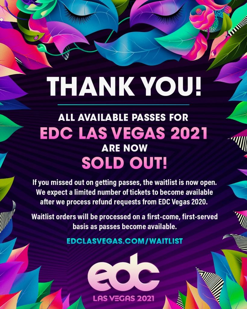 “I’m not feeling down about this situation and I hope our fans aren’t either. Moving the show allows us even more time to add onto all of the incredible things we had planned for this year, and I could not be more excited for what we have in store for next May,” said Pasquale Rotella, Insomniac Founder and CEO. “I know our celebration of 25 years of EDC will be an unforgettable one, and I’m so grateful to have this experience to look forward to.”